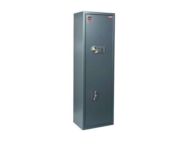 Предназначен для хранения огнестрельного оружия. Сейфы соответствуют требованиям ст.59 Постановления правительства РФ № 814 от 21 июля 1998 года «О мерах по регулированию гражданского и служебного оружия и патронов к нему на территории РФ». максимальная высота ствола - 1384 мм Комплектуются электронным кодовым замком PS-310/E01 + ключевой Толщина металла корпуса и двери – 3 мм оборудованы патронным отделением, запирающимся на ключ, полками и ложементами для ружей наличие анкерных отверстий для крепления сейфа к стене