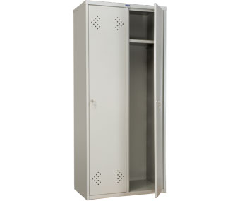 Металлический шкаф для одежды Практик LS-21-80, 2 секции, полка, перекладина, крючки