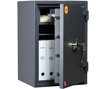 предназначены для защиты документов и ценностей от несанкционированного доступа (взлома)   устойчивость к взлому по ГОСТ Р 50862-2012: класс 1 (РСБ-С); класс 2 (ГОСТ Р)   огнестойкость по ГОСТ Р 50862-2012: класс 30Б (РСБ-С), класс 30Б (ГОСТ Р)   при заливке двери и корпуса сейфа используется специальный тяжелый бетон   корпус сейфа и дверь заливные; толщина стенок - 40 мм   3-х сторонняя усиленная ригельная система запирания   защита замка и ригелей от высверливания и выбивания   система блокировки ригельного механизма при выбивании замка   огнестойкость обеспечивают термоактивные прокладки   комплектуются ключевым замком KABA MAUER   наличие анкерного крепления к полу. Анкерный болт в комплекте